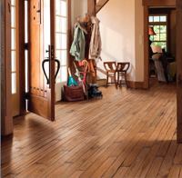 Inverness hardwood flooring features hand planing, hand-rubbed glazing, and distressing elements. Floors come in cherry, hickory, and maple and feature a scratch-resistant coating. The product is backed by a 25-year warranty. Mannington. 856.935.3000. www.mannington.com.
