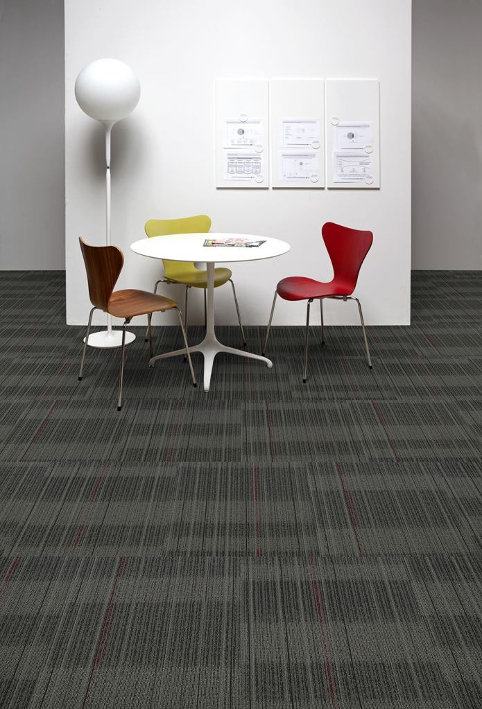 This rugged carpet tile collection uses windshields as one option for its eco-friendly backing.