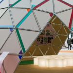 The Trans/Hitos 2013: Geometries exhibition at the center of the convention hall celebrated the use of ceramics to create spaces. The 9-meter-diameter (29.5-feet-diameter) dome has 275 facets and houses the winning projects from the Ceramics for Architecture and Interior Design Awards organized by the Spanish Ceramic Tile Manufacturers' Association (ASCER).