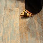 Ceramic tiles printed to simulate wood continues to trend in the world of tile. Vives's porcelain tile collection Faro assumes the look of painted, distressed wood.
