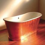 The Atocha copper tub is stunning, but at $23,545, it is also pricey. Made from 4-inch copper strips that have been welded together, the Japanese-style soaking tub measures 68 inches long. Diamond Spas.