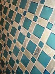 Oceanside Glasstile. The Geologie series of mixed-material tiles consists of glass and slate mounted on a 12-inch sheet. Field tiles can measure either 1 by 1, 1 by 2, or 2 by 2 inches. The line satisfies the current demand for mixed materials, the company’s president says. www.glasstile.com.