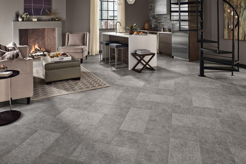 Designed and printed in Pennsylvania with stone quarried and manufactured in Illinois, The Armstrong Flooring’s Alterna product line is an engineered stone flooring collection. Like natural materials, Alterna is stylish and durable, but a comfortable surface makes the tiles warmer to the touch, kinder to the feet, and easier to care for than other stone flooring. Alterna is durable enough to handle kids, pets, and heavy traffic, and comes in a variety of patterns. Whispered Essence (shown) is a concrete-infused collection blending soft gray tones with irridescents. Other options recall wood, marble, and porcelain. The tiles are FloorScore certified for low-VOC emissions. armstrong.com