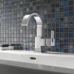 Delta. The Vero collection, boasting clean, ribbon-like lines, includes WaterSense-certified lavatory faucets that flow at 1.5 gpm and 1.5-gpm showerheads. Showerheads feature H2OKinetic technology, which the manufacturer says provides the feel of 2.5 gpm despite the lower flow. Both units are available in chrome and Brilliance stainless finishes. www.deltafaucet.com. Booth #1845.