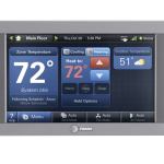 Trane. The ComfortLink II Thermostat is designed for easy set-up… Trane. The ComfortLink II Thermostat is designed for easy set-up and simple operation. A trouble-shooting menu and imbedded diagnostics, along with self-calibration for zoning, provide for easier installation by contractors. For homeowners, the thermostat’s 7-inch color touchscreen provides multi-room monitoring, as well as customizable levels of programming for indoor air quality, temperature, and humidity. The device can be used with any standard HVAC system. 903.581.3660. www.trane.com. Booth #W3155.