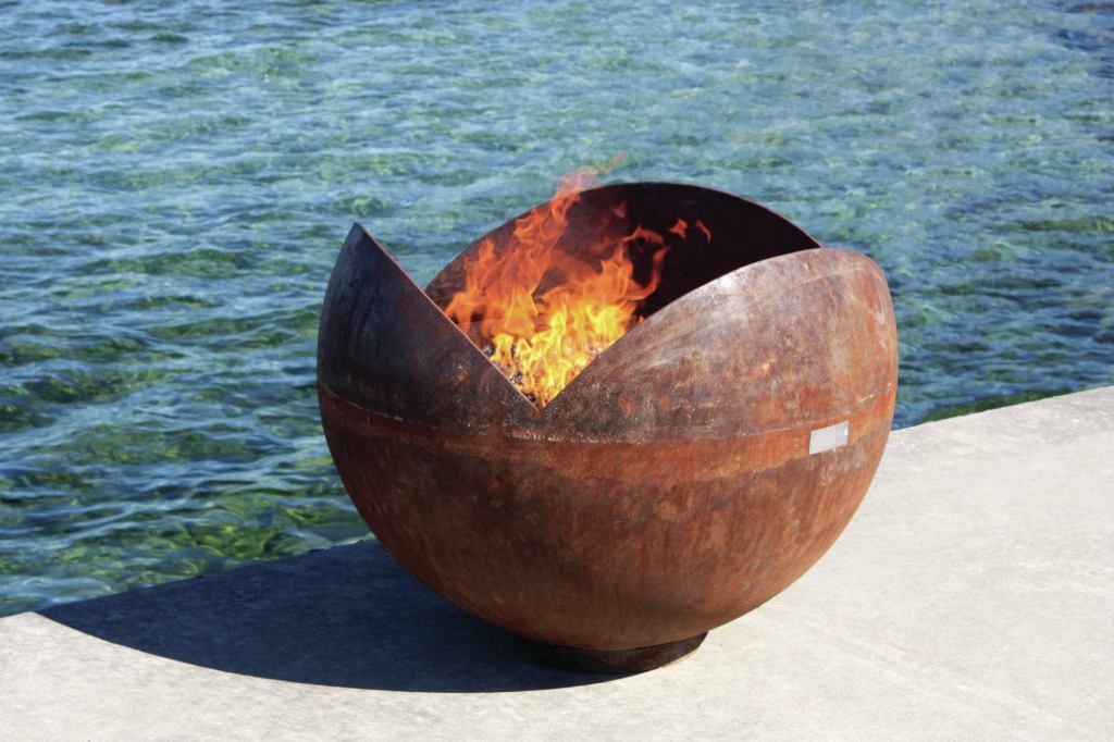Handcrafted from 100 percent recycled steel, the Firefly Sculptural Firebowl has scalloped sides that shield the flames from the wind and accentuate the play of light inside the bowl. It can be painted or left to patina naturally over time, and is suitable for use with wood or charcoal. The bowl sits on an attached 12-inch-diameter base and measures 37 inches across. John T. Unger Studio. www.johntunger.com