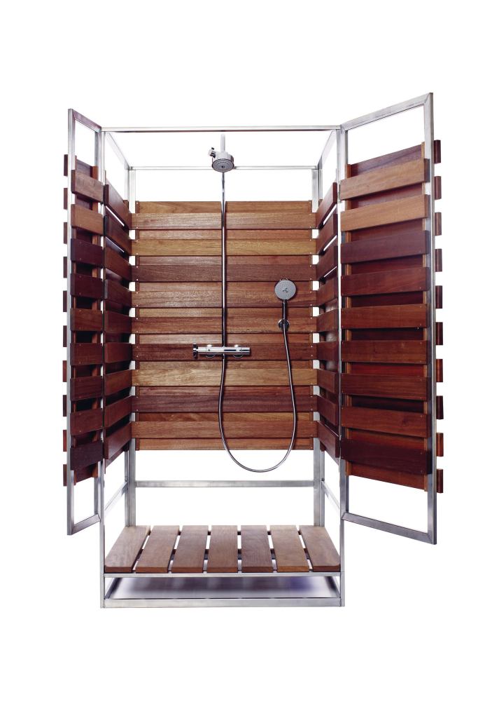 Oborain combines the natural environment with design technology for a pre-fab outdoor shower that’s not limited to regions that enjoy warm weather all year. The shower’s permanent or temporary installation options both avoid the need to dig plumbing trenches by hooking up the system, which includes an Axor Citterio 3-jet showerhead, to a garden hose. The shower features a stainless steel frame, hardwood cumaru decking, and mahogany wall panels in three sizes: a single module, with or without doors; a larger version with either a changing area or more shower space; and a double shower option with a changing area. Oborain. 413.376.8854. www.oborain.com.