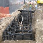 #15 DeepRoot Partners Stormwater Management System The Silva Ce… #15 DeepRoot Partners Stormwater Management System The Silva Cell modular system holds soil for tree growth and stormwater management while supporting paved surfaces. The system holds 10 cubic feet of soil per unit, protecting tree roots from compaction and providing room for stormwater infiltration and surrounding utilities. The 48-by-24-by-16-inch fiberglass and polypropylene cells have galvanized steel supports and can be stacked up to three cells high and laterally as wide as necessary before the decking is attached. 800.458.7668. www.deeproot.com.
