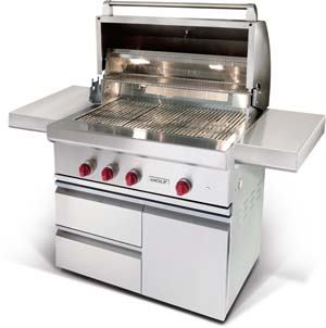 Wolf’s new outdoor gas grills are constructed of double-wall stainless steel in 30-, 36-, and 42-inch sizes. The two largest models offer 90,000 BTUs of cooking power and a 25,000-BTU searing station. Wolf Appliance. 800. 332.9513. www.subzerowolfoutdoor.com