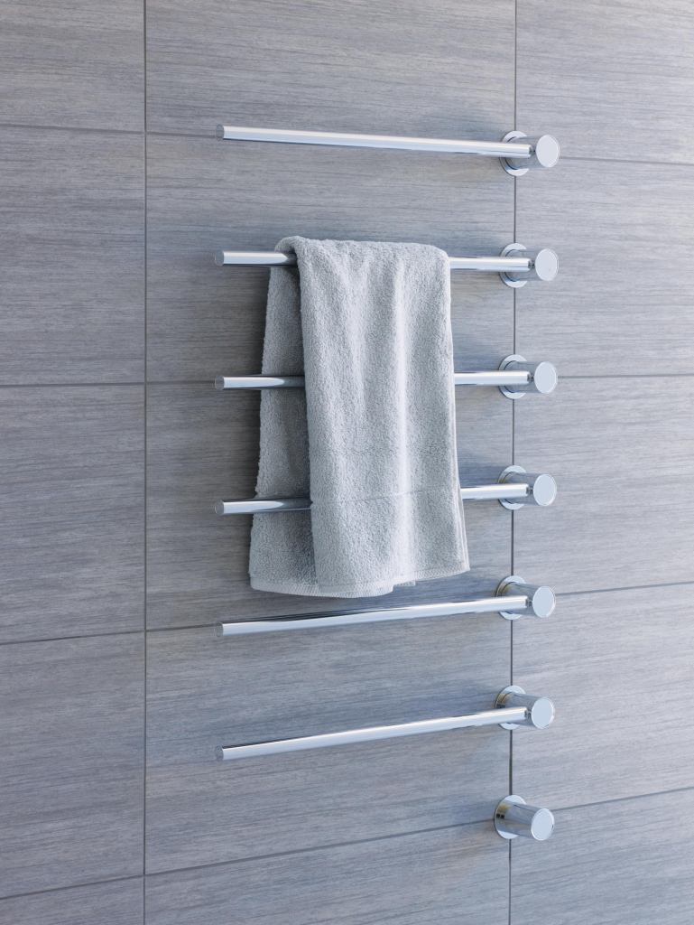 Available in chrome, brushed chrome, and stainless steel finishes, the Vola towel warmer hides technical elements behind the wall and exposes a sleek system of bars that can be configured in a variety of positions to fit each space. Hastings Tile & Bath. 516.379.3500. www.hastingstilebath.com