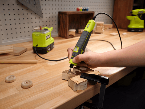 The 18V ONE+ Precision Rotary tool is designed for fine detail work across a variety of surface types, including metal engraving, fine woodworking, glass etching, and polishing. The cordless tool includes five variable speed settings, ranging from 4,400 to 23,000 RPM, and 12 accessories to fit a variety of applications. The quiet motor also allows for unobtrusive indoor use. ryobitools.com