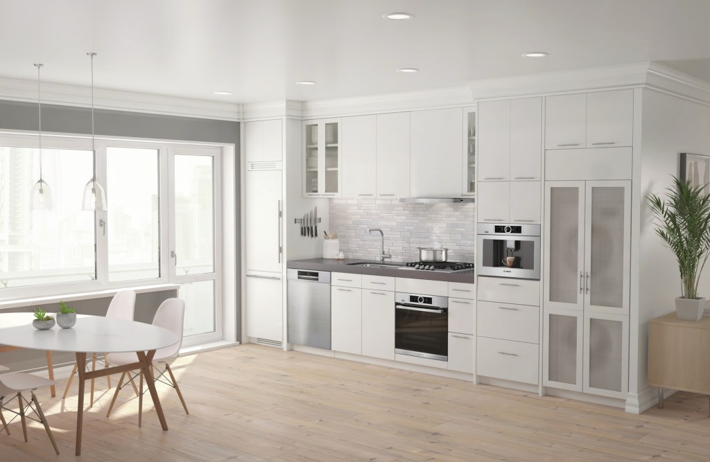 Bosch’s redesigned dishwashers feature a third rack for extra loading capacity, EasyGlide wheels for smooth operation of the racks, tines that can fold or stand up depending on what’s being loaded into the dishwasher, an ExtraDry setting with higher water temperatures, and a Speed60 cycle for a quick wash. The dishwasher, along with other kitchen appliances from the brand, will be equipped with the company’s Home Connect system, which will allow homeowners to remotely control appliances through a smartphone app.