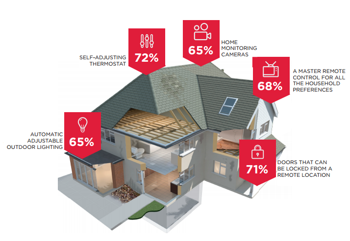 - 40% of North Americans listed their entertainment room as the area of the home they are most excited about connecting to their smart home, followed next by their kitchen (39%) and their bedroom (34%).