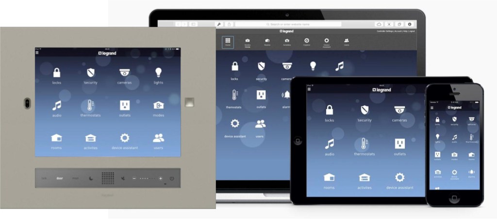 With Legrand expertise built in, the wiring is all well and good. But, as Webster points out, “homeowners don’t see 90% of what’s happening with a connected home ecosystem. What they do see is the interface; the connection point to controlling their home. They want one spot where they can open the door or turn on the music in the living room. Something simple to access and use.” To that end, Intuity’s user interface will be identical and seamless whether homeowners access it through the wall-mounted command center, online, or on an iOS device.