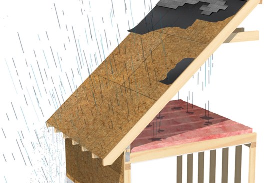 But a sealed roof deck, such as a ZIP System Roof Assembly, which is made of engineered wood panels with an integrated, water-resistive barrier and advanced acrylic tape, provides a secondary, continuous water-resistive barrier on a roof deck that helps prevent water intrusion at panel seams.