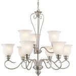 Offering traditionally styled designs, the Tanglewood Collection offers a wide selection of products that includes pendants, chandeliers, and wall sconces. Pieces feature satin-etched glass shades and come in two new finishes: brushed nickel and Olde Bronze. Kichler.