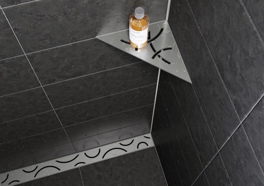 The 5/32-inch, brushed stainless steel Schluter shower shelves are made to fit neatly between rows of shower tile, and do not require any additional materials or tools for installation. The rectangular SHELF-N is designed to fit inside Schluter’s KERDI-BOARD-SN shower niche, and the SHELF-E’s three configurations are made for use in corners. The SHELF-W stands alone between tile rows in the shower wall. The shelves complement Schluter’s STYLE shower grates, and the Curve and Floral Patterns match the point and linear drains with the same designs. schluter.com