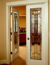 Artist’s Mission The Lehigh Door’s Mission-style art glass is protected between two layers of tempered glass. Border caming is finished in granite, while the ribbed and clear beveled glass design is outlined with antique patina caming. The door comes primed or in stain-grade pine and red oak. Signamark. 800.803.8182. www.signamark.com.