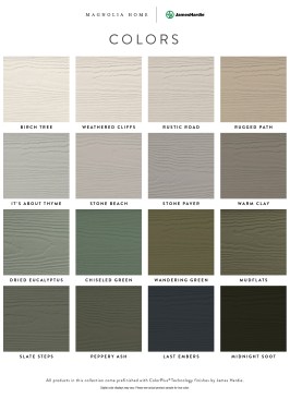 The Magnolia Home | James Hardie Collection is available in the most popular Hardie siding styles—plank, shingle, and board-and-batten—as well as trim and soffit products. All products are pre-finished with James Hardie’s proprietary ColorPlus Technology finishes.