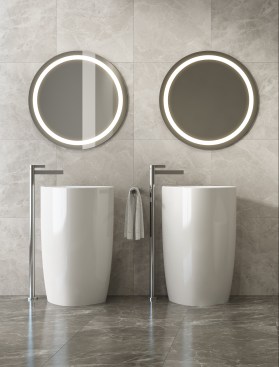 The Etna monoblock pedestal lavatory sink is one of many Bocchi bathroom fixtures, previously available outside the U.S., that will join its catalogs in the U.S. market starting this year. The sink is made from glazed fireclay ceramic, which provides a uniform and nonporous surface that resists scratches and stains. It requires either a floor-standing or wall-mount faucet, and includes a color-matched pop-up drain cover. Finishes include white, matte white, black, matte black, and sapphire blue. bocchiusa.com