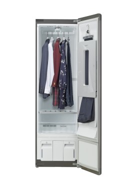 The LG Styler Plus adds a larger-capacity option to LG’s line of steam clothing care units. The new model measures approximately 24 inches wide, and can accommodate up to five hanging garments at once, plus a pair of pants on the interior door. All Styler units are designed to eliminate odors, reduce allergens and shakes out wrinkles on a cycle that can last as little as 20 minutes. The Gentle Dry cycle removes moisture from the clothes without the risk of shrinking or damage from high heat, while the Pants Crease option produces a crisp crease line without an iron. lg.com