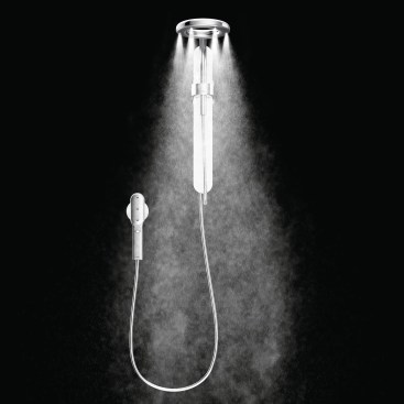 The Nebia by Moen spa shower uses product partner Nebia’s patented spray technology to create an atomized water flow, which uses up to 45% less water than a conventional showerhead. This process creates the sensation of more water for the user. An adjustable slider and showerhead swivel allow users to move the system based on their height, water temperature, and coverage preferences. An optional handshower attaches to the wall via a magnetic bracket. moen.com