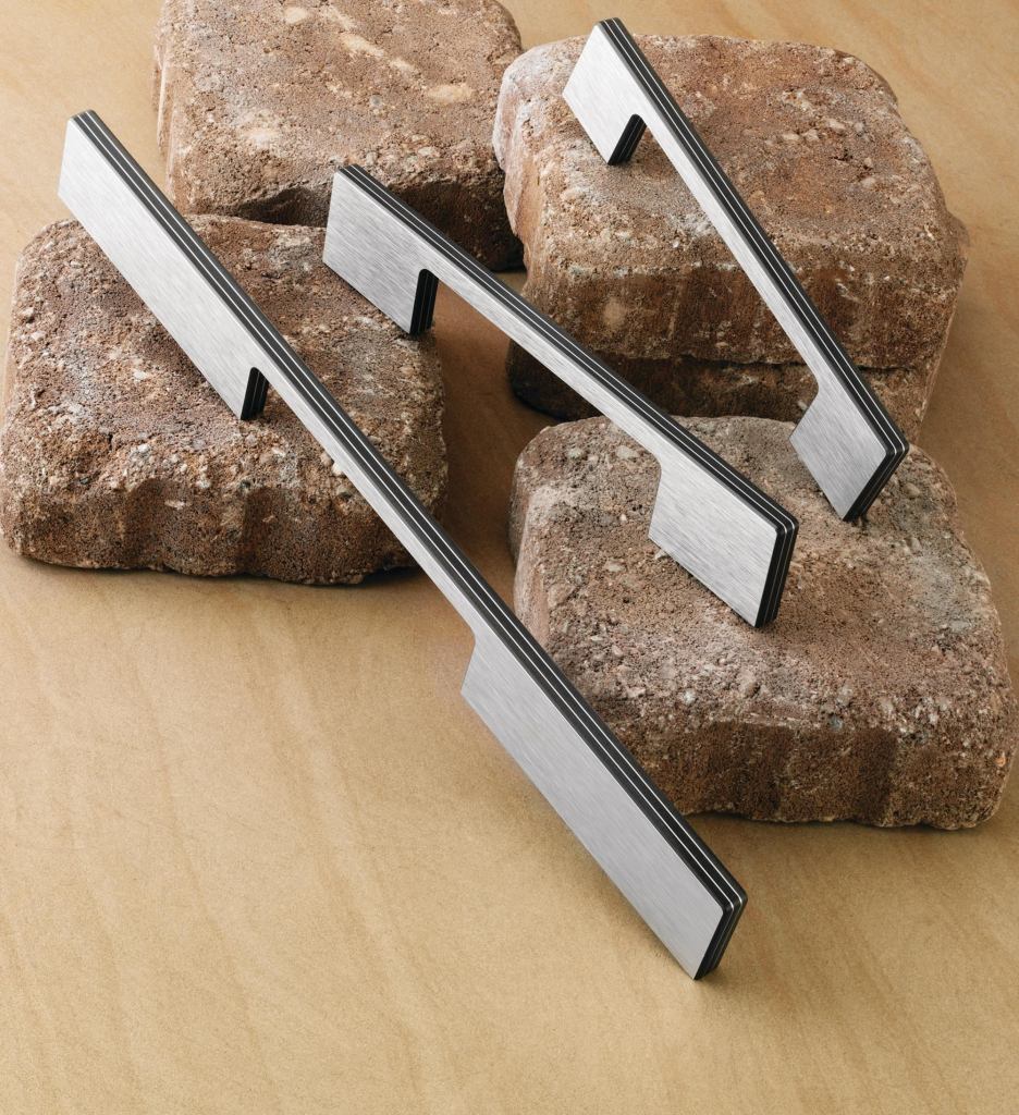 Crafted from brushed aluminum and high-pressure laminate, these pulls blend with the metal accents and appliances in modern or European-style kitchens. They come in myriad lengths to accommodate many door and drawer sizes. Häfele America Co. 800.423.3531. www.hafele.com.