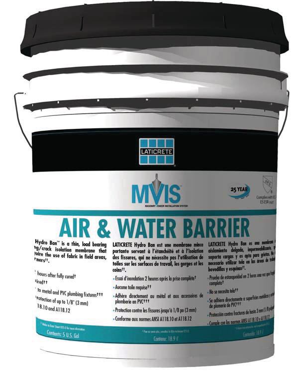 The Air & Water Barrier is part of the manufacturer’s Masonry Veneer Installation System. Designed to protect against water intrusion, it is installed behind exterior wall claddings to produce air and water holdout. The low-VOC product can be used on a wide range of substrates such as wood, concrete, and brick. Cost: about $1.40 per square foot. Laticrete International. 800-243-4788. www.laticrete.com.