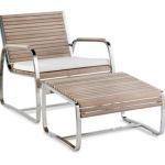 Designer Doug Levine’s Echo Collection for Link Outdoor uses polished stainless steel and plantation-grown teak for a neutral architectural form that can be incorporated in myriad outdoor room spaces. The collection includes two dining tables, dining chairs, two lounge chairs (one with an ottoman), a sofa, cantilevered side- and drink tables, a planter, a bench, and a coffee table. Five optional powder coats are available (white, steel, antique bronze, silver, and gunmetal) as well as natural, oiled, or weathered teak finishes. Link Outdoor, 972.385.7380; www.linkdesignsolutions.com.