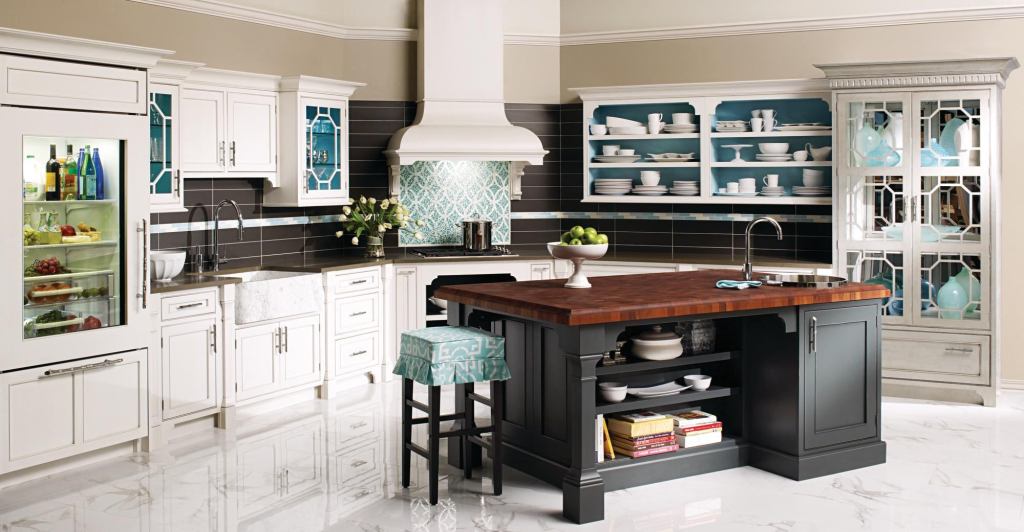 This modern Chinoiserie style of custom cabinetry combines Chinese Chippendale design with a new technique, the “Silver Veil,” which antiques the finish. Eight-sided mullions, undercabinet lighting, and German hardware keep the design contemporary, says the manufacturer. Plain & Fancy. 800.447.9006. www.plainfancycabinetry.com.
