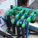 How it works: A modular heat-exchanger panel distributes a heating and cooling transfer fluid, either glycol or water, through fractal flow channels on the panel’s surface. The 23 1/2-inch by 23 1/2-inch panels use removable push-on connections that align the panels into rows. The rows send and return energy in manifolds to form arrays and have a shut-off valve on the send and return for easy installation and pressure testing. The manifold system is custom-designed for each project and uses an Aquatherm brand Climatherm weldable PP-R pipe. Removable connections allow for easy access to the surface below the system, including the roof and below-grade utilities.