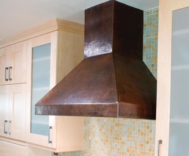 Each Native Trails range hood is crafted by hand from copper and comes in four sizes, in addition to a custom sizing option. The hood is available in antique copper and brushed nickel finishes and has either a 600 or 1,200 CFM motor. Native Trails. 800.786.0862. www.nativetrails.net