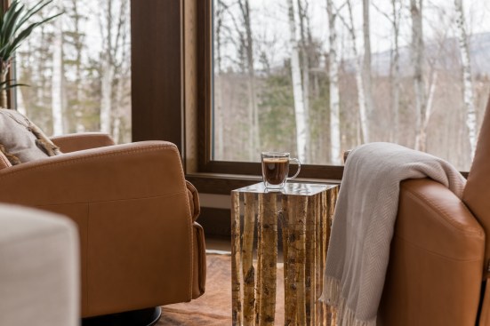 Quebec-based Double Noir manufactures clear acrylic tables containing actual tree trunk sections and cuts. Catherine Bolduc founded the company less than a year ago and makes the tables in a factory owned by her family, which has been in the acrylic manufacturing business for 61 years. The wood is locally sourced from mill overruns or trees felled by storms. The Brunelle side table, one of three designs at the show, features seven birch tree trunks in an 18”-tall by 10”-square acrylic block. It weighs 75 pounds. doublenoir.com