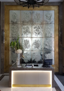 Glaciacast by Ireland-based McGuire Glass is a flora-themed series of cast glass panels. Each panel is made by melting glass over botanical matter, such as oak and olive tree branches, or strawberry vines. Because the glass is heated to a temperature of 800 C, the plant material is burned off, leaving its unique imprint. The glass then cools for 30 hours. Panels are made to order in custom sizes up to 40″ by 32″, with a satin, silver, or bronze finish, and framed in an array of materials. The panels can also be assembled into a coffee table. mcguireglass.ie