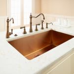 Handcrafted in Italy, Rohl’s line of commercial-grade copper s… Handcrafted in Italy, Rohl’s line of commercial-grade copper stainless sinks are designed to appeal to luxury home buyers. Unlike traditional stainless models, these sinks are constructed of high-grade stainless steel for extreme durability. The beautiful, long-lasting sinks are crafted with a rounded, easy-to-clean bottom edge radius and zero-edge side walls. Each one also features an insulating undercoat on the entire sink which reduces splash-back sound. www.rohlhome.com.