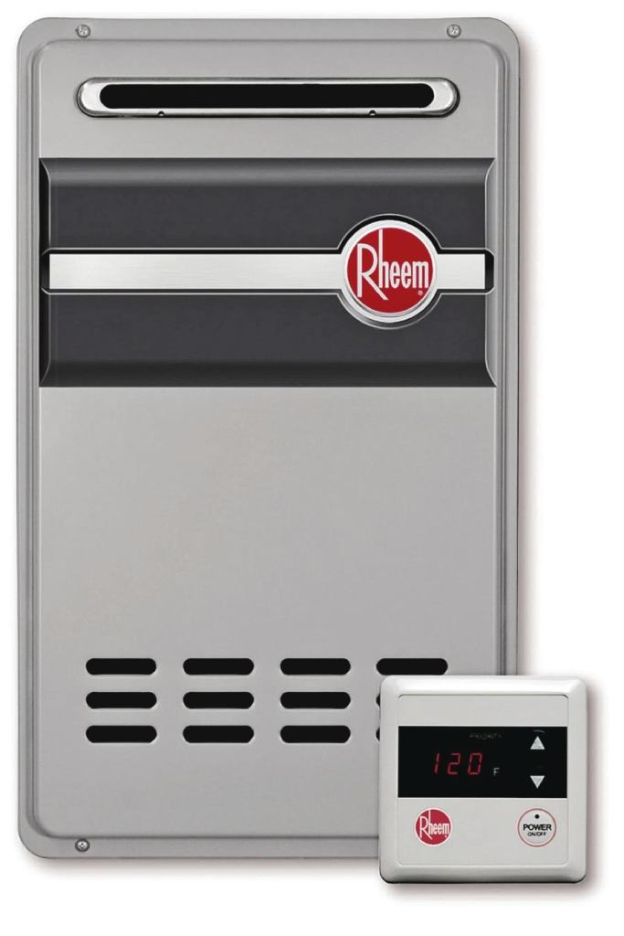 Designed for two-bath homes in warm climates, the RTG-66X outdoor tankless water heater is capable of delivering hot water at a flow rate of 6.6 gallons per minute. It offers a lower firing threshold for summertime performance, so it will activate with a hot water demand of only 11,000 BTU per hour. Measuring 23 5/8 inches high, 13 7/8 inches wide, and 8 7/8 inches deep, the unit is also pre-programmed for high-altitude use. Rheem Manufacturing Co www.rheem.com