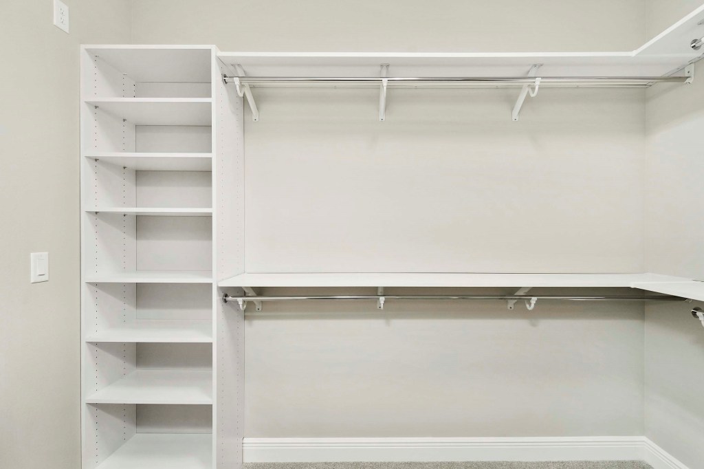 A walk-in closet located in the master bedroom is an amenity that many homebuyers are looking for when scouting real estate. Many companies have developed systems to accommodate this demand with products like ClosetMaid’s MasterSuite—a luxury organization system offered in a variety of color options to complement any home’s interior.