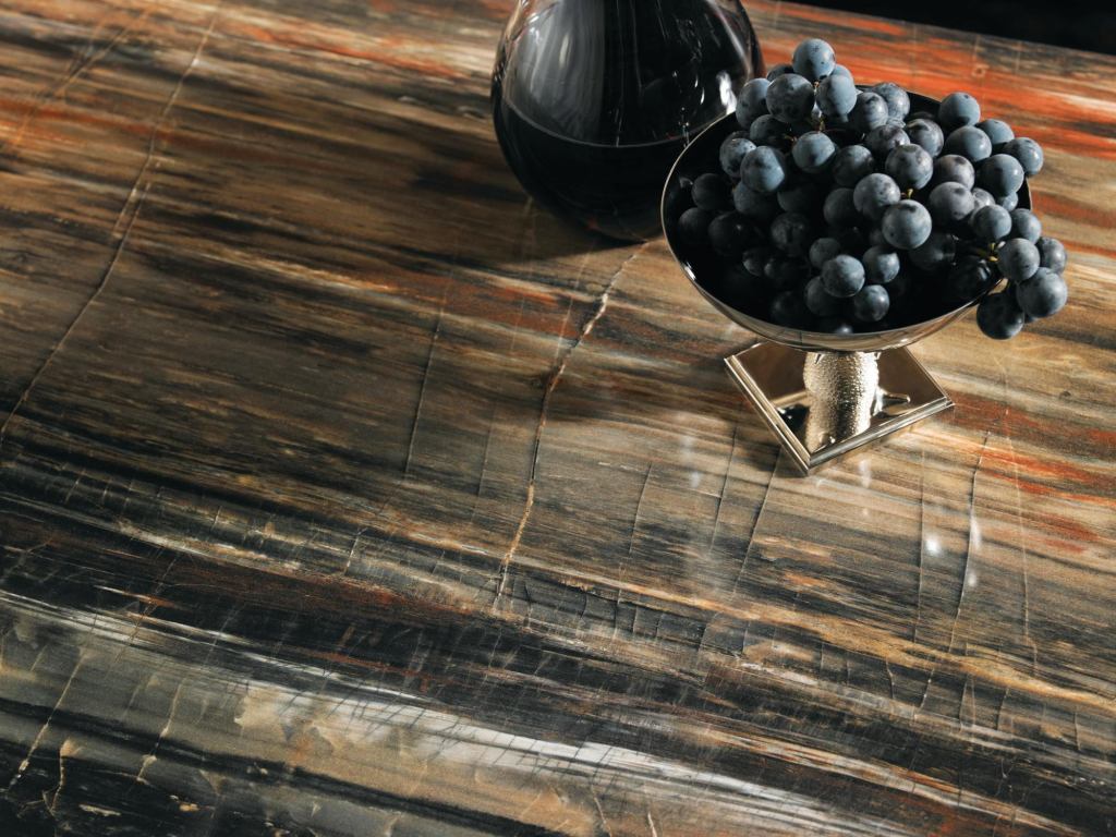 Like the natural phenomenon this laminate was named for, the 180fx series’ petrified wood pattern was compressed to form a dramatic display of earthy green, rust, black, and ivory hues. The company recommends the laminate for vertical interior or light-duty horizontal applications to preserve its gloss finish. Sheets come in myriad sizes up to 5 feet by 12 feet. Formica. 800.367.6422. www.formica.com.