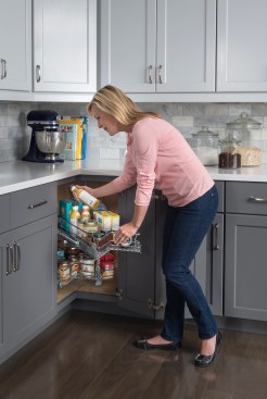 Give homeowners more convenience in the kitchen with a blind corner cabinet solution that does double duty. The Easy 360 Susan organizer from Hardware Resources increases usable space by adding drawer functionality to a rotating lazy Susan fixture. The chrome organizer includes two center baskets that pull out of the cabinet, plus four stationary side baskets. Clear acrylic non-slip liners keep contents from slipping and spilling. Each basket has a 175-pound capacity. The Easy 360 Susan requires a minimum 12 1/4-inch cabinet opening, and installers can adjust the height from 24 to 30 inches. hardwareresources.com