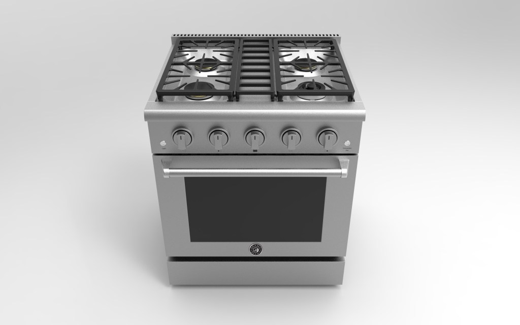 The latest Brama appliance is sized for small kitchens, and features high-performance burners and multiple oven modes.