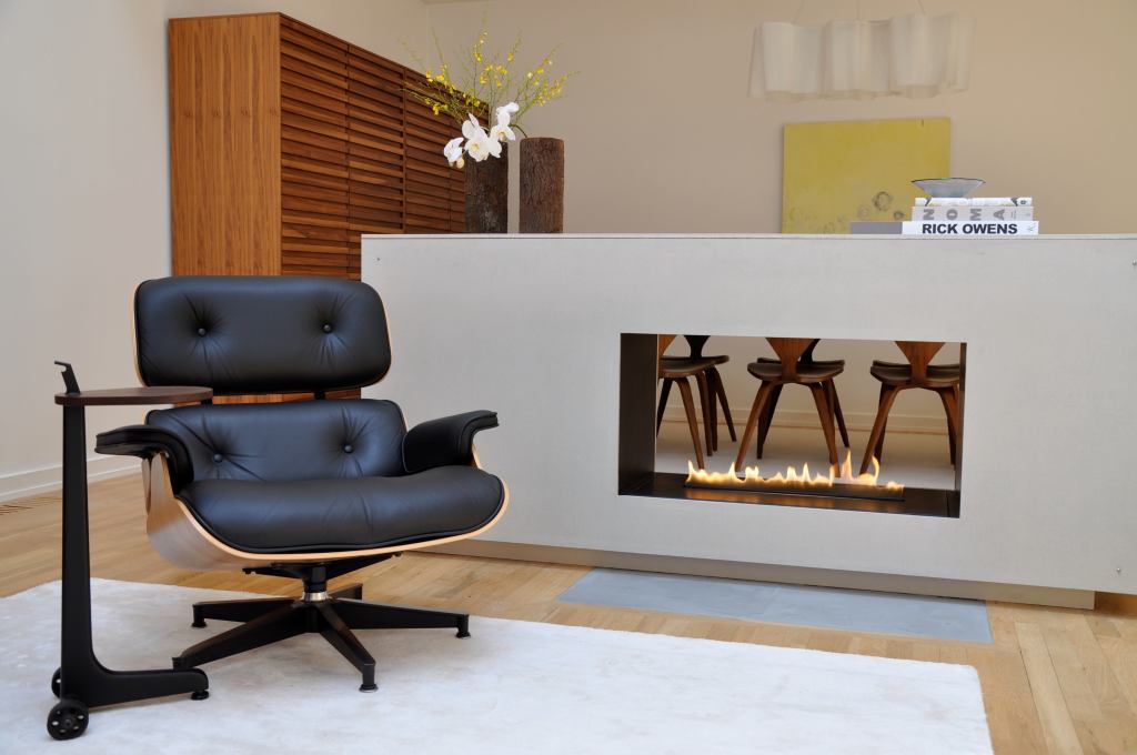 This fireplace can be positioned nearly anywhere and offers views from two directions.