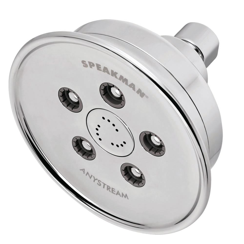 Anystream Assana features a spa design aesthetic coupled with a traditional rain shower-head sensibility. The unit operates at 2 gallons per minute and features Anystream 360º spray technology, an attribute that allows the bather to make small incremental adjustments and transition through an infinite number of sprays. Cost: $62. Speakman Co. 800-537-2107. www.speakmancompany.com.