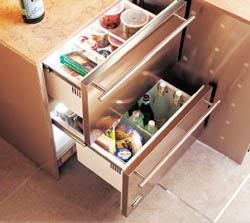 A cool refrigeration concept is red hot with homeowners. “People love refrigerator drawers,” says interior designer Jana Erwin of Woodlands, Texas-based Classic Designs. “They especially love the fact that they integrate with the regular drawers if you put custom panels on them.”