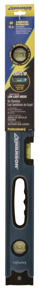 It’s good to know that you can use a pro-style level in a poorly lit room if the need arises. The Lightning Level’s three lighted vials make measurements easy to read in low light or complete darkness. Accurate to .0005 inch per foot, the level features an auto shutoff, a V-groove on one side for round stock, and rubber-polymer end caps. Four models are available measuring 24 and 48 inches. Cost: $45 to $75. Swanson Tools. 815-469-9453. www.swansontoolco.com.