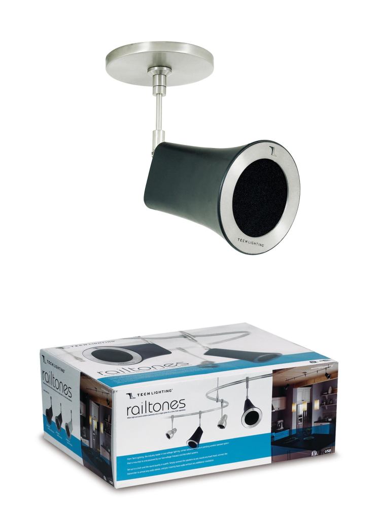 Railtones is a wireless speaker system that incorporates lighting and sound in one unit. Powered by the company’s 12- or 24-volt FreeJack or MonoRail system, it uses a USB transmitter that plugs into a computer to transmit sound. The kit includes two speakers, wireless transmitter, infrared remote control, power adapter, and audio cables. Cost: $599. Tech Lighting. 847-410-4400. www.techlighting.com.