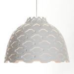 LC Shutters is a bell-shaped aluminum pendant that is cut and pr…