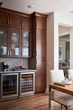 Western Window Systems’ Series 3600 90-Degree Vinyl Multi-Slide Pocket Door opens from the home’s dining area to the kitchen, and a stacking version of the Series 3600 Vinyl Multi-Slide Door opens from the family area to an outdoor living space. The energy-efficient sliding door system features a dual-paned low-E glass, a low U-value, and low Solar Heat Gain Coefficient. The vinyl material offers minimal upkeep as it does not peel, chip, or need to be painted, according to the company.