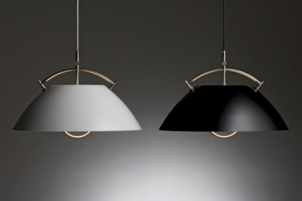 First designed by Hans J. Wegner in 1962, the Pendant luminaire has been reissued by Carl Hansen & Søn. A stainless steel handle allows users to raise and lower the fixture without touching its aluminum shade, which comes in black or white. The 20”-diameter fixture stands approximately 14.5” tall. carlhansen.com