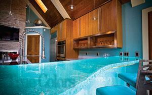 Want to add more color to your home’s kitchen or bar? ThinkGlass, a Canadian designer and manufacturer of cast-glass walls, floors, and other applications, now offers its handcrafted countertops with white or RGB LEDs. The latter option, it says, can be controlled by a programmable remote and glows in hundreds of different colors. AlterEgo, the company’s lighting consultant, also is able to customize the lighting component to fulfill specific requests.