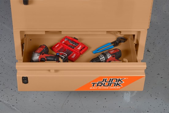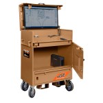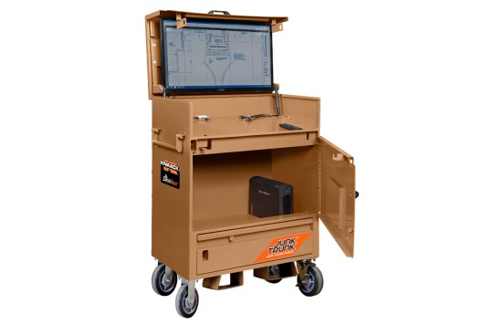 Shared project management software helps keep trades on task and coordinated on large projects. Now Knaack has a specialized kiosk to bring that software securely onsite for easy access. The DataVault Mobile (model 118-M) includes a 32-inch touchscreen monitor to view plans and specs, as well as a large storage locker that can fit a five-gallon bucket of tools. Heavy-duty independent locking drawers give quick access to frequently used tools and accessories, as well as additional tech components.